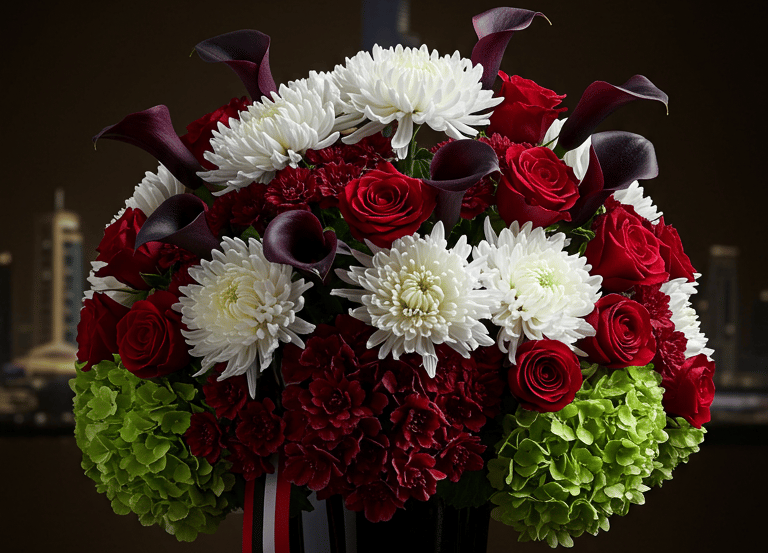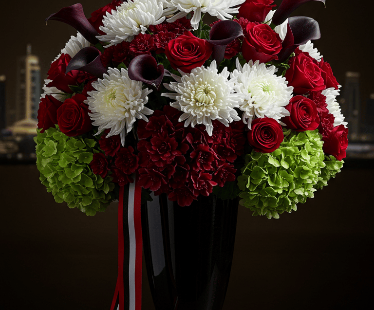 UAE National Day is a cherished celebration, a moment when the nation comes together to honor unity, heritage, and the extraordinary achievements of the Emirates. Across the country, homes, corporations, hotels, and Majlis spaces are beautifully decorated in the colors of the UAE flag: red, green, white, and black. And at the heart of these celebrations lies an essential creative element: flowers